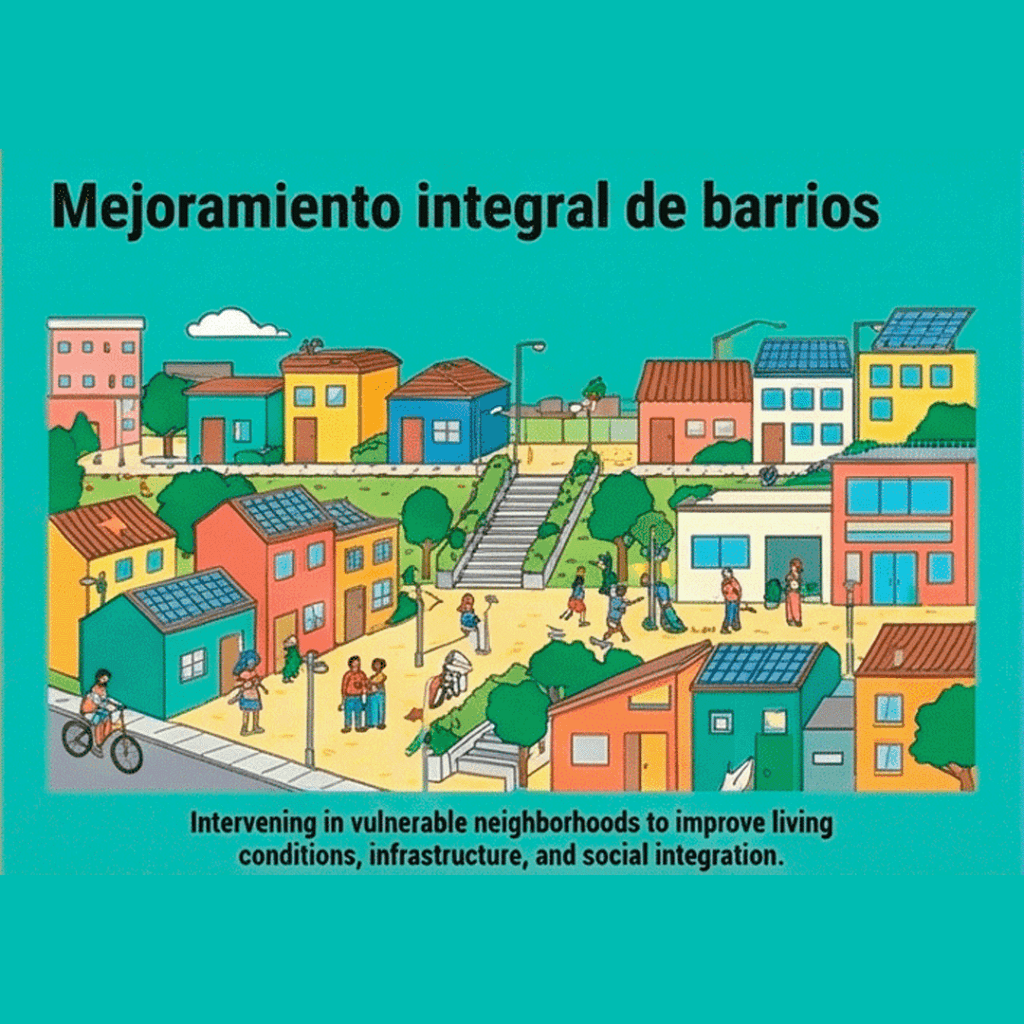 En los asentamientos de origen informal, el diseño urbano se convierte en una herramienta de justicia social. La intervención no puede ser impositiva; debe ser participativa. El «mejoramiento integral» reconoce el valor del tejido social y físico existente. Las acciones clave incluyen la provisión de infraestructuras básicas (agua, saneamiento), la creación de espacio público de calidad mediante «acupuntura urbana» y la mejora de la conectividad con el resto de la ciudad formal, todo ello minimizando el desplazamiento de residentes.